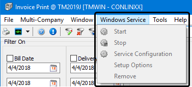 Note: To setup and configure a Windows Service for Invoice Printing, you will need to start the Billing > Invoice Print program (Bill.exe) as an administrator who has local system administrator privileges on this workstation or server.