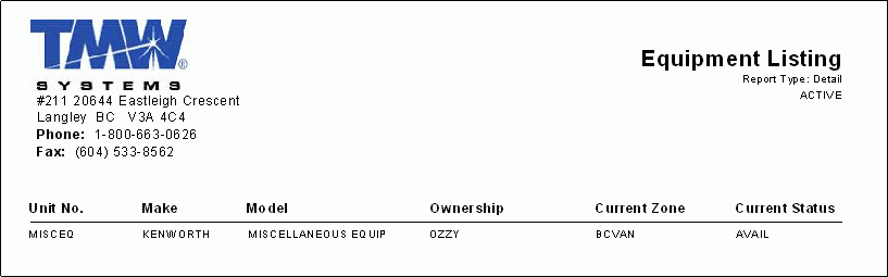 This report will detail the current locations of the Power Units in the TruckMate system. Users should run this report from the Power Unit Profiles program. Users have the ability to filter on 'Active' or 'Not Active' Power Units.