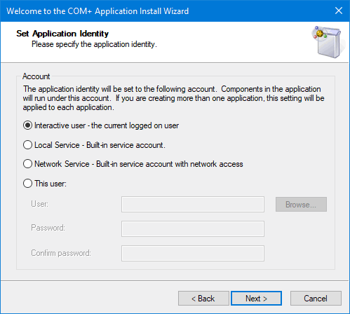 The COM+ Application Install Wizard opens. -