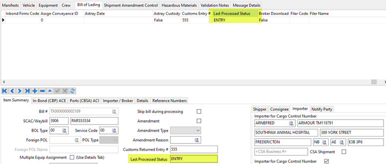 On the eManifest record, the CSA business number typically comes from the importer’s profile. The importer is the consignee on the freight bill.