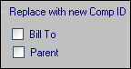 If the company is not a Bill To or a Parent, the Replace with new Comp ID section is not visible.