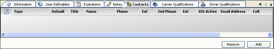 Displays a list of expirations recorded for the carrier. Expirations are key activities and out-of-service dates that can affect the availability of a carrier.