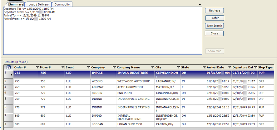 The system retrieves stops that match all restrictions entered on all sub tabs, not just those restrictions set on the sub tab currently in the front.