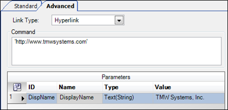 6. If you want to base part of the hyperlink command on a static value, the contents of the link’s host window, or the results of an expression: