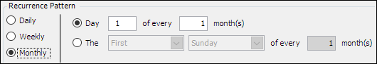 Indicate how often the recurring deduction will be processed. The fields on the right side of the section vary according to your selection. |
