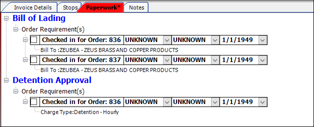 In this example, notice that there are two paperwork requirements for Bill of Lading. Because this is a consolidated order, each order requires a Bill of Lading.