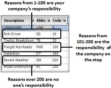 As orders move through the delivery process, things happen that might make drivers early or late to stops. For example, a driver might arrive to a pickup location on time, but the shipper does not have the freight ready. This delay might cause the driver to be late for subsequent stops. Depending on your company’s business practices, early or late stops can alter billing and/or pay. Because of this, many companies record a reason for early or late stops.