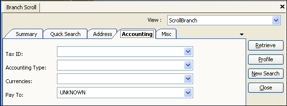 Branches can be set up as cost centers, or can they can identify brokerage representatives, such as members of a booking terminal (customer service representatives) or an executing terminal (carrier representatives).