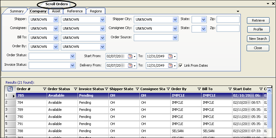 For example, the Scroll Orders window consists of a grid that lists orders.