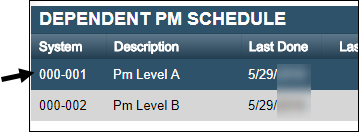 When you set up dependent PM schedules, you can link lower interval levels to higher interval levels. When you complete the higher interval level on a repair order, the system completes all lower level intervals automatically. You can add one dependent PM schedule per unit.