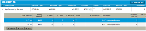 Discounts allow you to offer parts or services at a discounted rate to your customers.