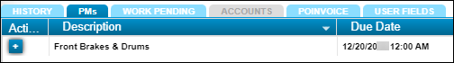 This tab lets you see and/or add a unit’s preventive maintenance (PM) information. This tab displays information only when PMs are due.