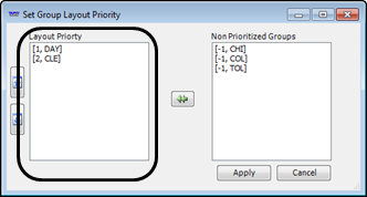 The group moves to the Layout Priority list, and is assigned number 1. -