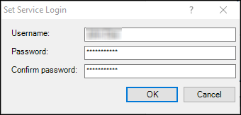 The Set Service Login window opens. On this window, enter the username and password for the machine on which the service will run.
