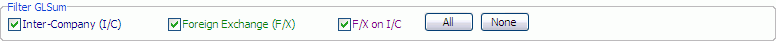 These three checkboxes allow you to optionally hide some or all of the auto-generated GL (inter-company and foreign exchange). The (read-only) auto-generated rows are also colored so, if you do display them, it is easier to pick out the "manual" (user-entered) rows (in black). These checkboxes are only visible if the system is set up for multi-company.