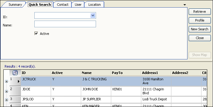 The system retrieves third party companies that match all restrictions entered on all sub tabs, not just those restrictions set on the sub tab currently in the front.