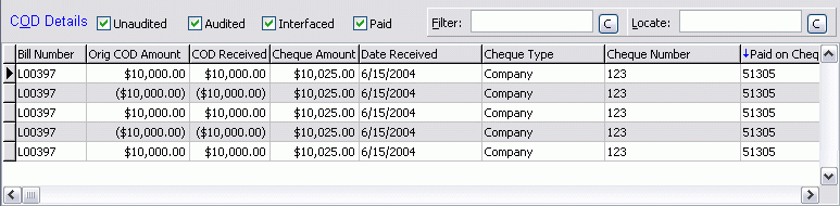 Highlight the Customer with a COD Payment, and place a checkmark beside the 'Audited' checkbox in the 'COD Details' Filter Area. A list of 'Audited' COD Transactions will appear in the below Grid.