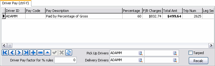 The 'Recalc' button can be used to refresh Driver Pay amounts based on changes in other TruckMate applications (i.e. a Driver’s Pay Contract is updated/changed in the Driver Pay Contracts program). |