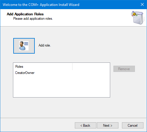 The COM+ Application Install Wizard opens. -