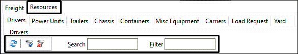 The Multi Mode Dispatch > Resources tab has several sub-tabs that list all of the available/unassigned resources that can be assigned to trips (planned or active) throughout the Multi Mode Dispatch program. Users can drag and drop any of the resources from the available tabs to assign drivers, power units, trailers, chassis and/or containers to their trips.