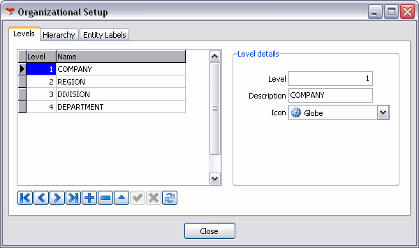 You cannot delete a Level if any Company Entities are attached to it, or if any Levels exist below it in the Organizational Structure.