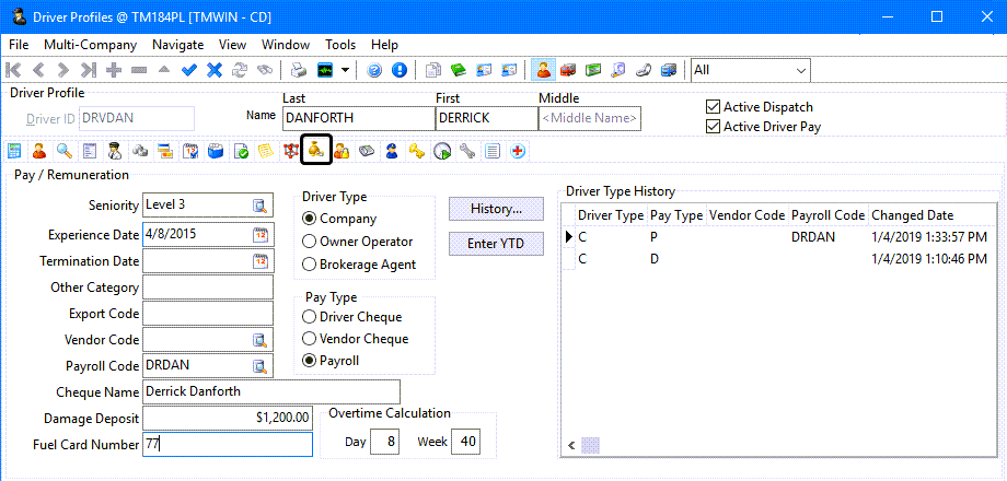 Indicates whether the Driver is included in the Driver Pay record information and has GL Accounts setup to handle his Pay information. |