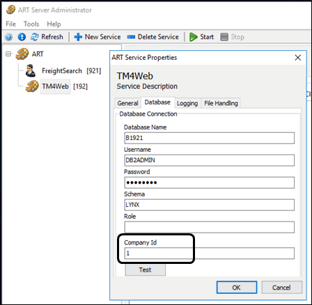ART services can run within a multi-company environment. Each company must have its own ART Server API service configured and running and each service must identify the Company Id in the Database connection details set up using the ART Admin program. This ability to support multi company has been back merged to TruckMate 19.4.