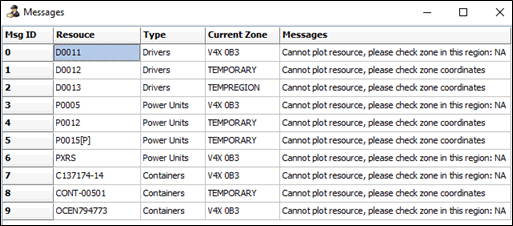 This window indicates zones that are not mapping correctly, so you can use the information to fix up the zones within Codes Maintenance, so that eventually these resources can be mapped.