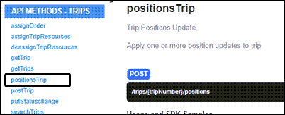A new endpoint called "positions" has been added to Trips API, which allows the requestor to provide an array of position updates for resources based on the latitude and longitude provided in the payload.