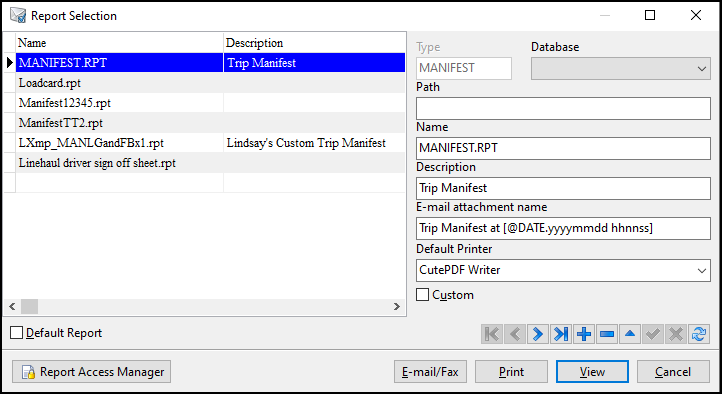 Opens the Trip Tree View Modification window, where you can select which fields to include in the view and set the default appearance.