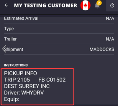 The Trimble Mobility (PeopleNet) workflow now supports the Estimated Time of Arrival (ETA) and Planned Time of Arrival (PTA) return macro actions correctly. Drivers can update ETA and PTA fields on their devices.