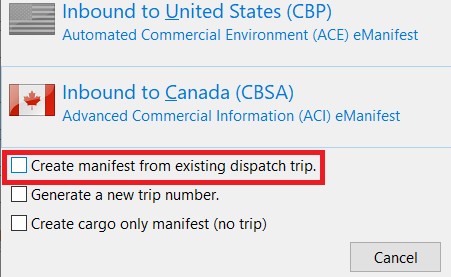 In eManifest, create a 309 or 309/358 record. Select Create manifest from existing dispatch trip. This letsTruckMate detects that it is a CSA shipment and sets the appropriate default values.