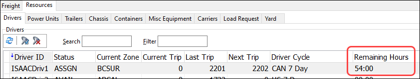 A Remaining Hours column now appears in the Dispatch and Multi Mode Dispatch driver grids.