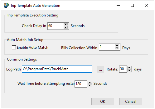 Trips are created using a new Trip Template Auto Generation service that must be set up in TruckMate Service Host prior to use.