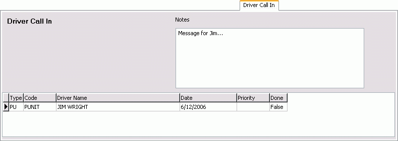 Double-click to toggle the 'Done' value from 'False' to 'True'. When the value is 'True', the record will no longer display on the Driver Call In grid or in the R&M Work Orders program. You can also mark a complaint as 'Done' in the R&M Work Orders program.
