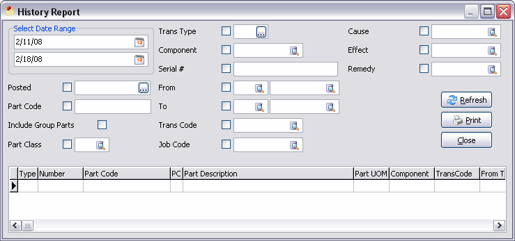 Note: This function does not copy the serial numbers, costs, taxes or totals, only the part code, the transaction code, the From location code, and the To location code.