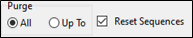 Indicate whether you want to include ALL records or only records up to a specified date (recommended to be at least 5 years prior to today’s date). When All is selected, it means that all transactions in the selected table will be marked for deletion. A Reset Sequence checkbox will appear when this radio button is selected to reset the sequence in the tables. The sequence is an integer column that is assigned a unique sequential number for each new record, using a DB2 sequence.