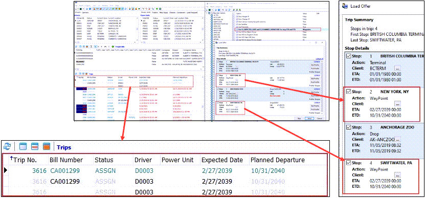 The Operation Point scenarios are already being handled in the Trip Operations window since the action happens immediately and the trips are updated immediately. The Planning Point scenario required addtional refinements to the status workflow since the trips required a creation state that could "begin" once previous trips and resources arrived from earlier planned trips.