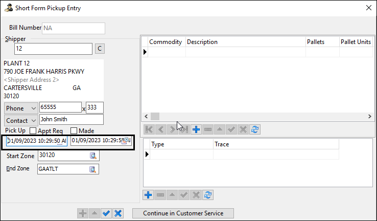 Now, the Short Form Pickup Entry window in Multi Mode Dispatch respects the value of this option as indicated:
