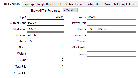 In the Trip status change and equipment repositioning window, the time a resource is repositioned is equal to the current time plus/minus the required time zone adjustment as defined on the freight bill.