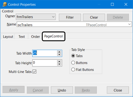 These options allow you to select a Component, use the 'Cut' command to remove it from its current location, and then use the 'Paste' command to place it in a different section of the program window. Performing a Cut/Paste is similar to dragging/dropping to move a control, but it is more powerful because you can (in most cases), move the control to a different section / parent. For example, a control on a tab can be dragged anywhere on that tab, but to move it to another tab within the same application, requires you to cut and paste it. |