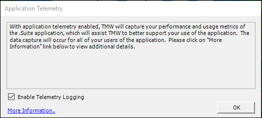 If you are a system administrator for the application, the first time you log in you will see the Application Telemetry window. By default, the feature is enabled.
