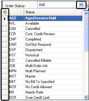 Some windows, such as the scroll windows, allow you to retrieve multiple records at the same time. They provide sub tabs that display fields in which you enter restrictions. Typically, you can select only one option at a time from a drop-down list. However, when you retrieve data, you may want to select more than one restriction for the same field. Therefore, some restriction fields allow you to select multiple options in their drop-down lists. One example is the Order Status field in the Order Scroll window.