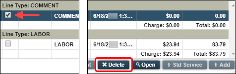 If you create a line item in error, you can delete it as long as the repair order status is Open.