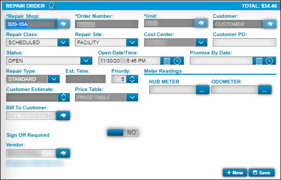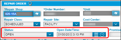 If there are open sections on the repair order, you must change the default date to a date before the section’s Open Date.