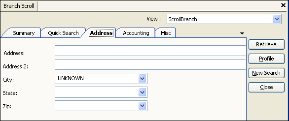 | Fields on the Misc tab are not functional in the Branch Scroll window. |