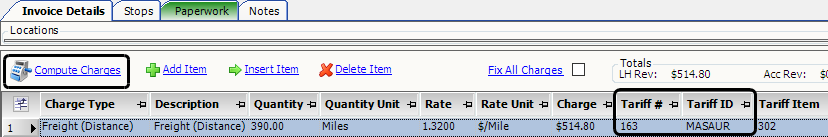 2. In the Invoice Details tab at the bottom of the window, click Compute Charges.