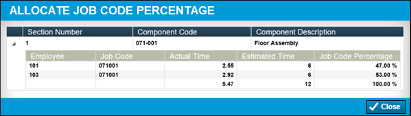 • If you need to edit the Job Code Percentage for any employee, click in the field, enter the correct percentage, and click Close.