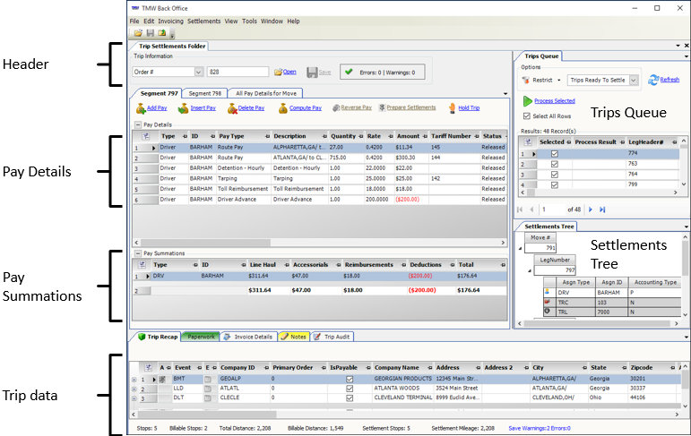 Use the following instructions to get up to speed quickly on using the Trip Settlements Folder.