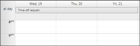 Open a calendar and navigate to a date to determine whether requested time off has been approved or is awaiting review. The status information appears in calendars as follows: